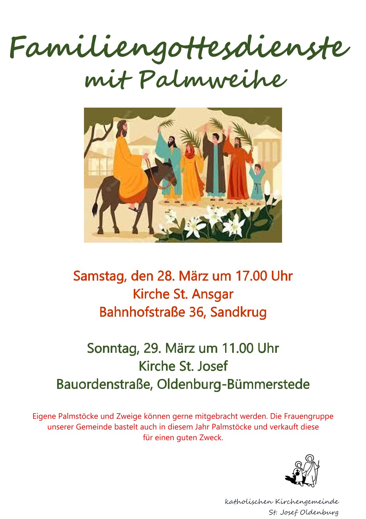 In diesem Jahr feiern wir zwei Familiengottesdienste mit Palmweihe.